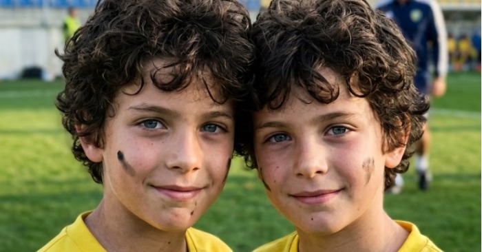 Mesmo queixo. Mesmo nariz. Mesmo cabelo na testa.