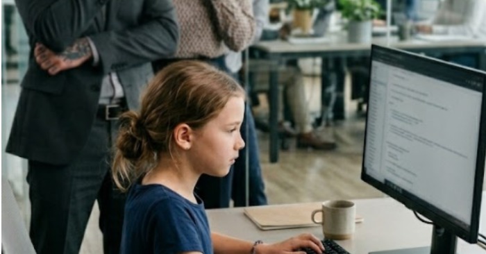Ela estava observando os erros na tela.