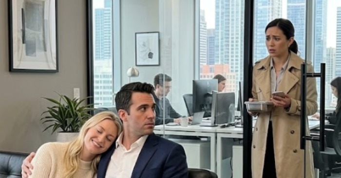 Alejandro estava sentado casualmente em uma poltrona de couro, a camisa aberta, a gravata frouxa… o braço em volta de Lucía, com uma naturalidade que sugeria mais do que um deslize isolado.